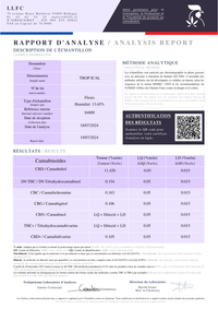 Pour cela, chacune de nos fleurs, ainsi que tous nos produits, sont rigoureusement testés par des laboratoires indépendants. Cette étape cruciale assure une qualité irréprochable et une sécurité optimale pour vous, nos clients.