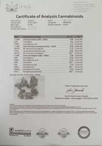 Pour cela, chacune de nos fleurs, ainsi que tous nos produits, sont rigoureusement testés par des laboratoires indépendants. Cette étape cruciale assure une qualité irréprochable et une sécurité optimale pour vous, nos clients.
