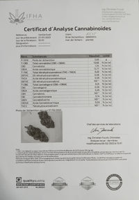 Pour cela, chacune de nos fleurs, ainsi que tous nos produits, sont rigoureusement testés par des laboratoires indépendants. Cette étape cruciale assure une qualité irréprochable et une sécurité optimale pour vous, nos clients.