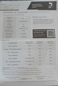 Fiche analyse WHITE SHARK - INDOOR HYDROPONIE | FLEUR DE CBD A INFUSER